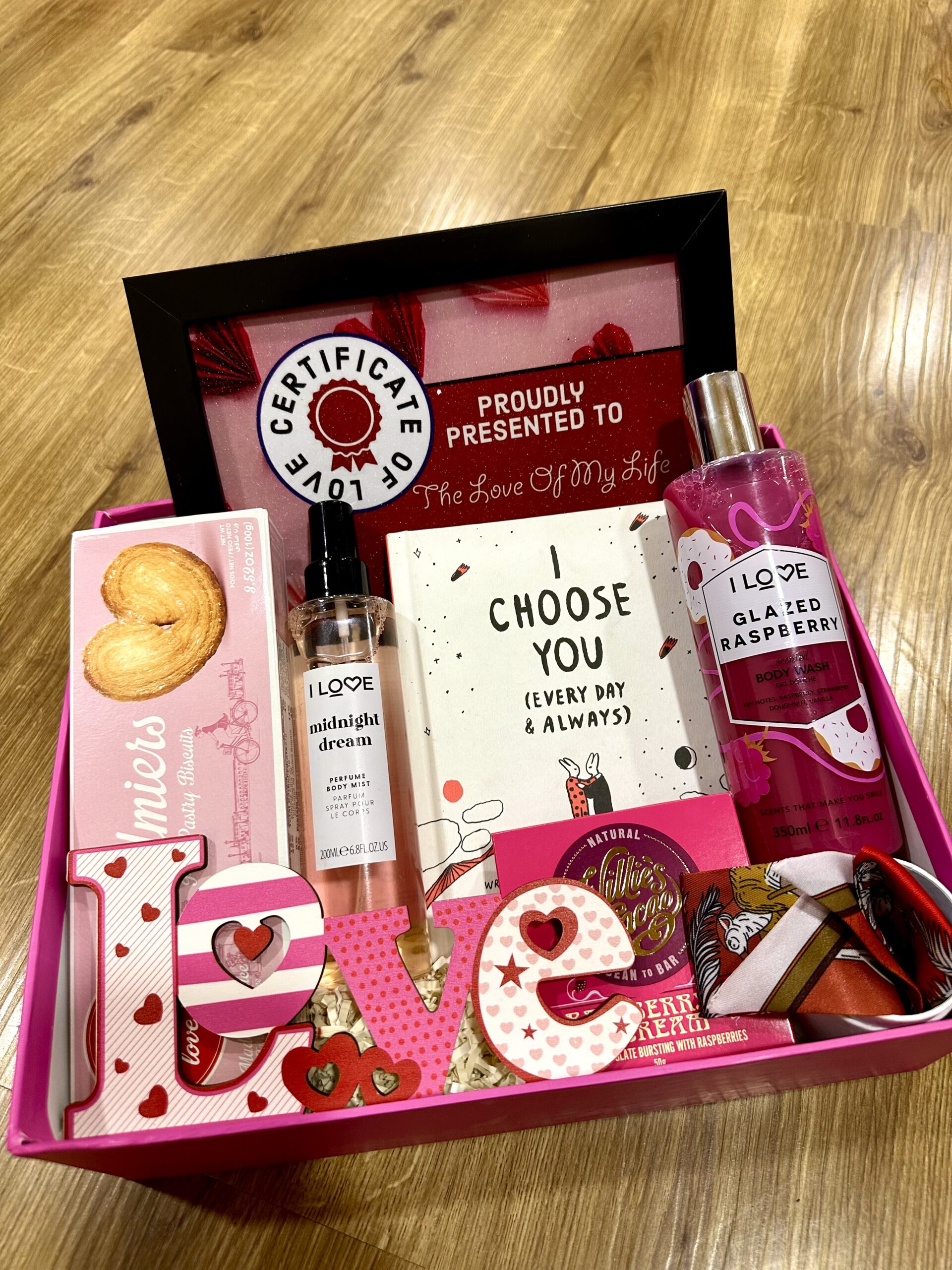 A thoughtfully curated gift box designed to celebrate love, affection, and meaningful moments. Each item inside has been carefully selected to express devotion, sweetness, and care—making it a perfect gift for someone truly special. From heartfelt keepsakes to indulgent treats and self-care essentials, this box is a beautiful reminder of love chosen every day.